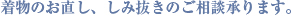 この汚れは落ちるものなのか、疑問に思っていること、困っていること、気になるしみがありましたらお気軽にご相談ください!